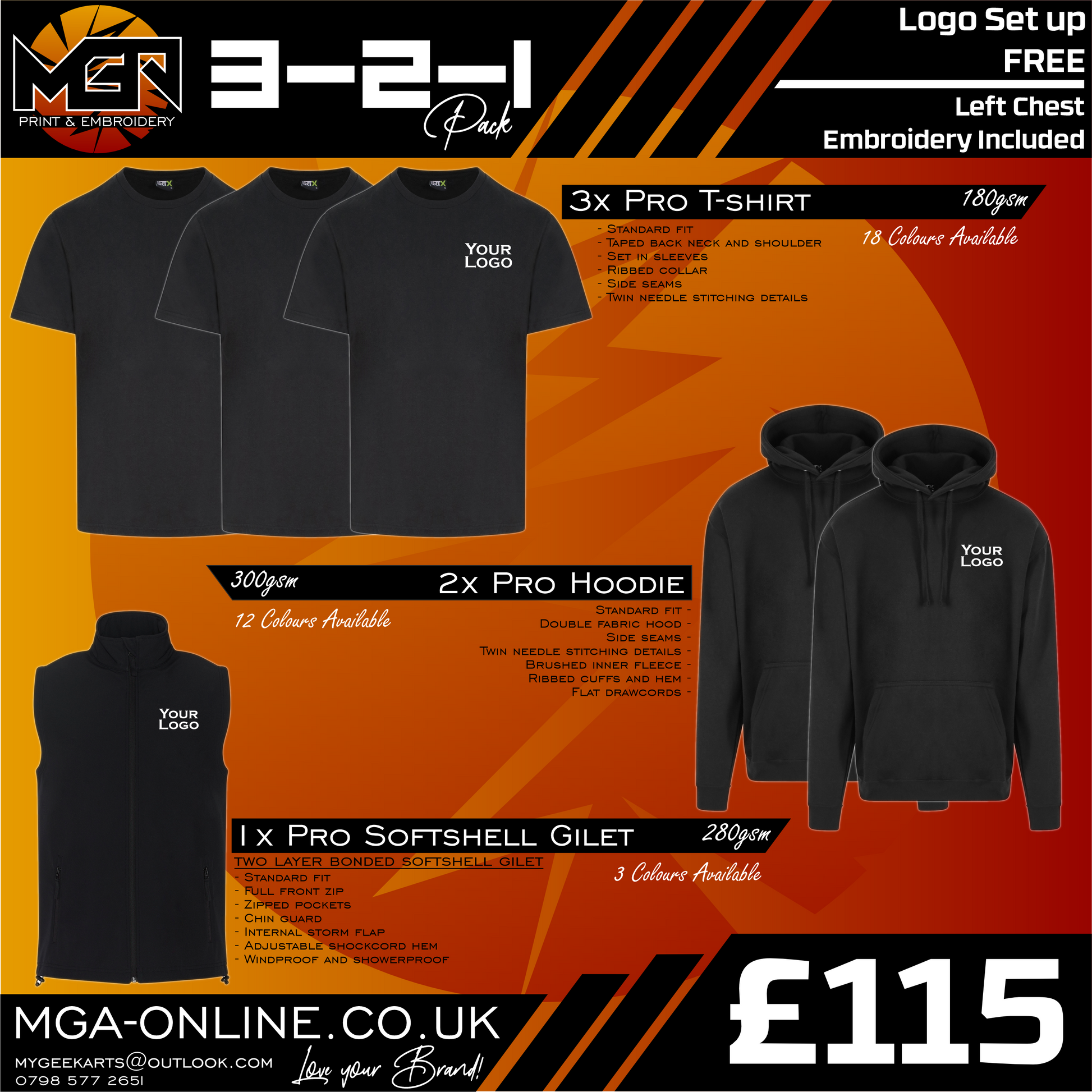 When selecting this bundle please input all details with regards to sizes and colours. Any further information please use the box provided. This will be confirmed again when I send across a logo sample. I will not embroider any garments until you are 100% happy with your logo sample. The sampling process usually takes around a week from placing the order and all orders are despatched within 4 working weeks.