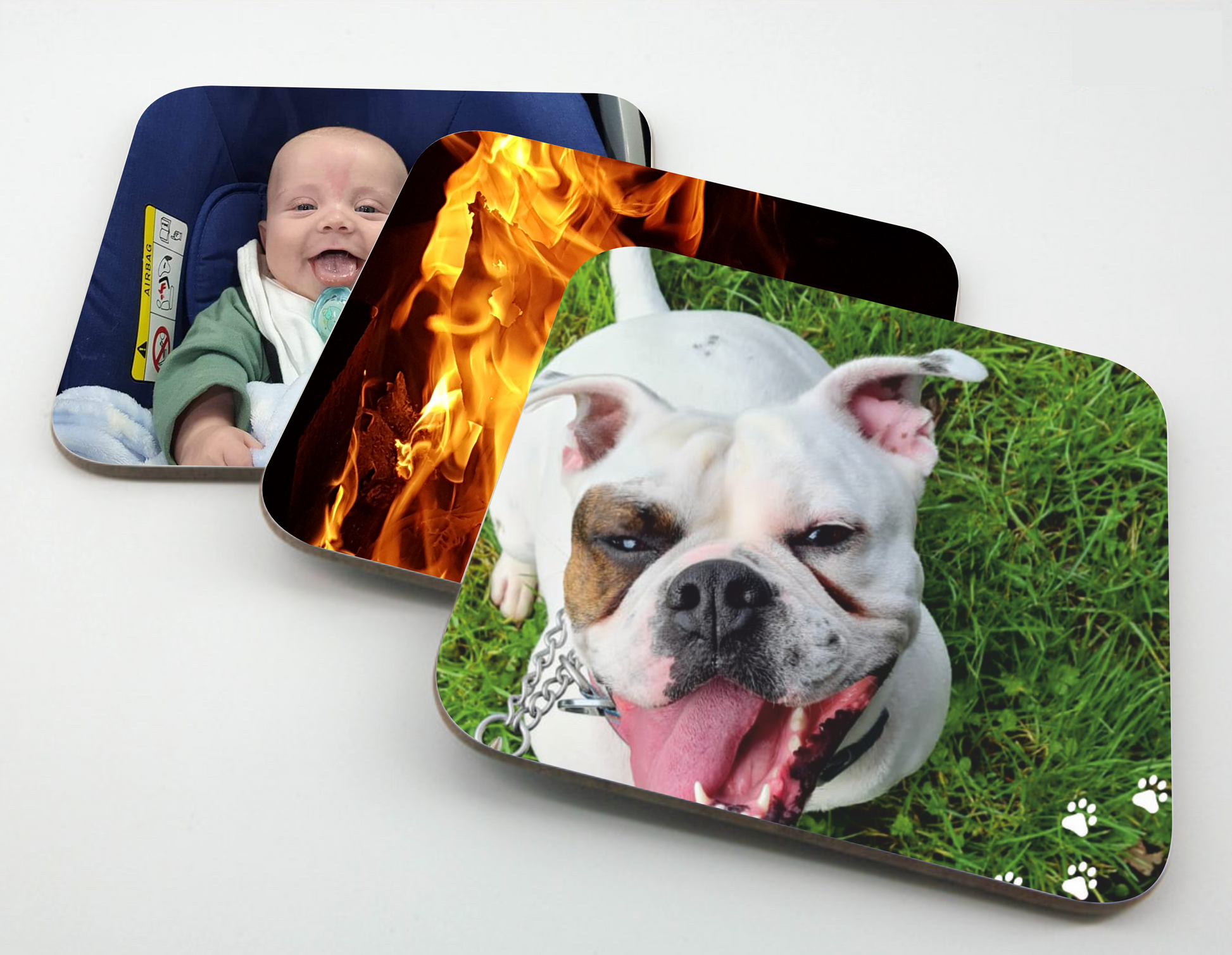 - Pack of 4 custom printed wooden coasters